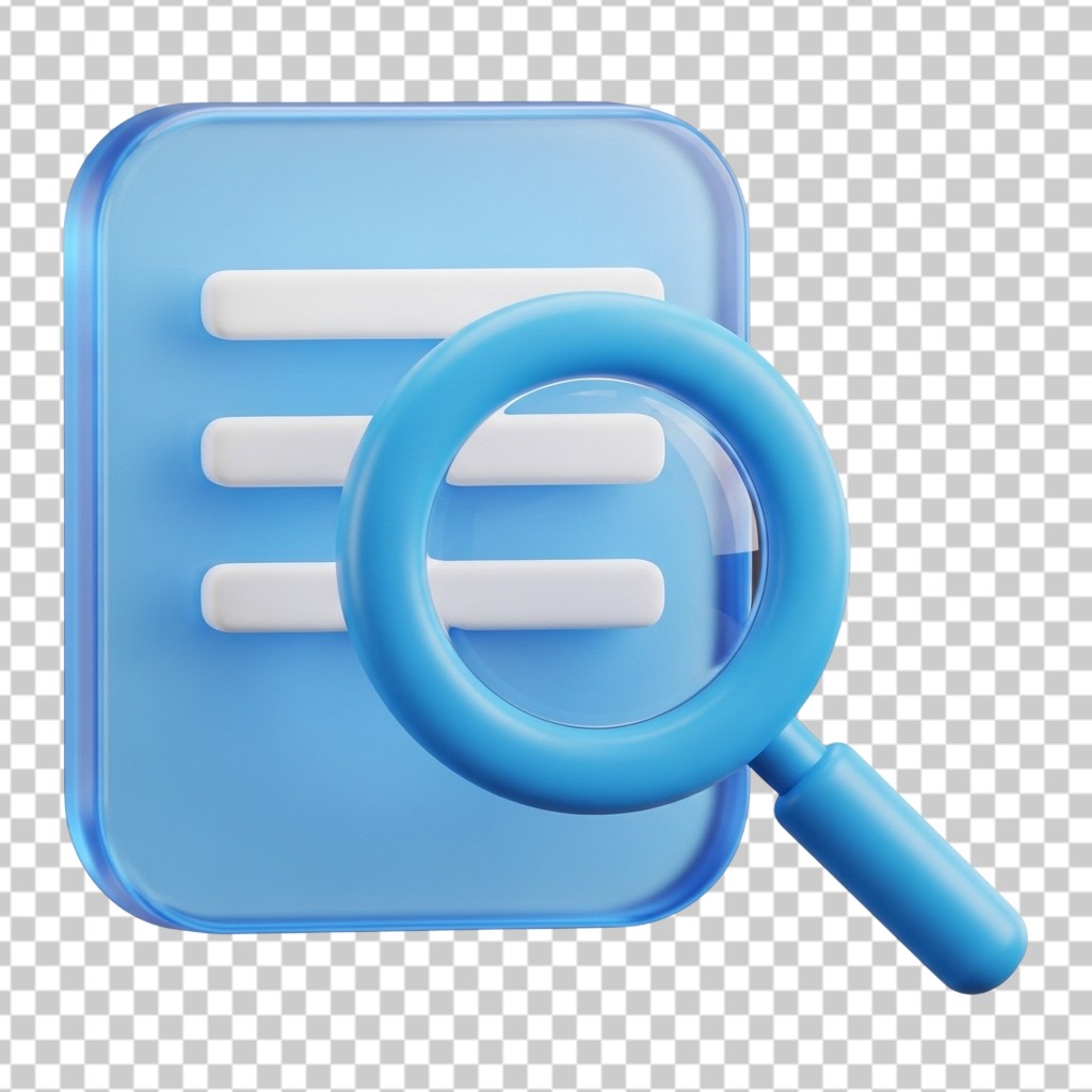 3D Blue Document File Icon with Magnifying Glass Search Concept PNG Transparent Background