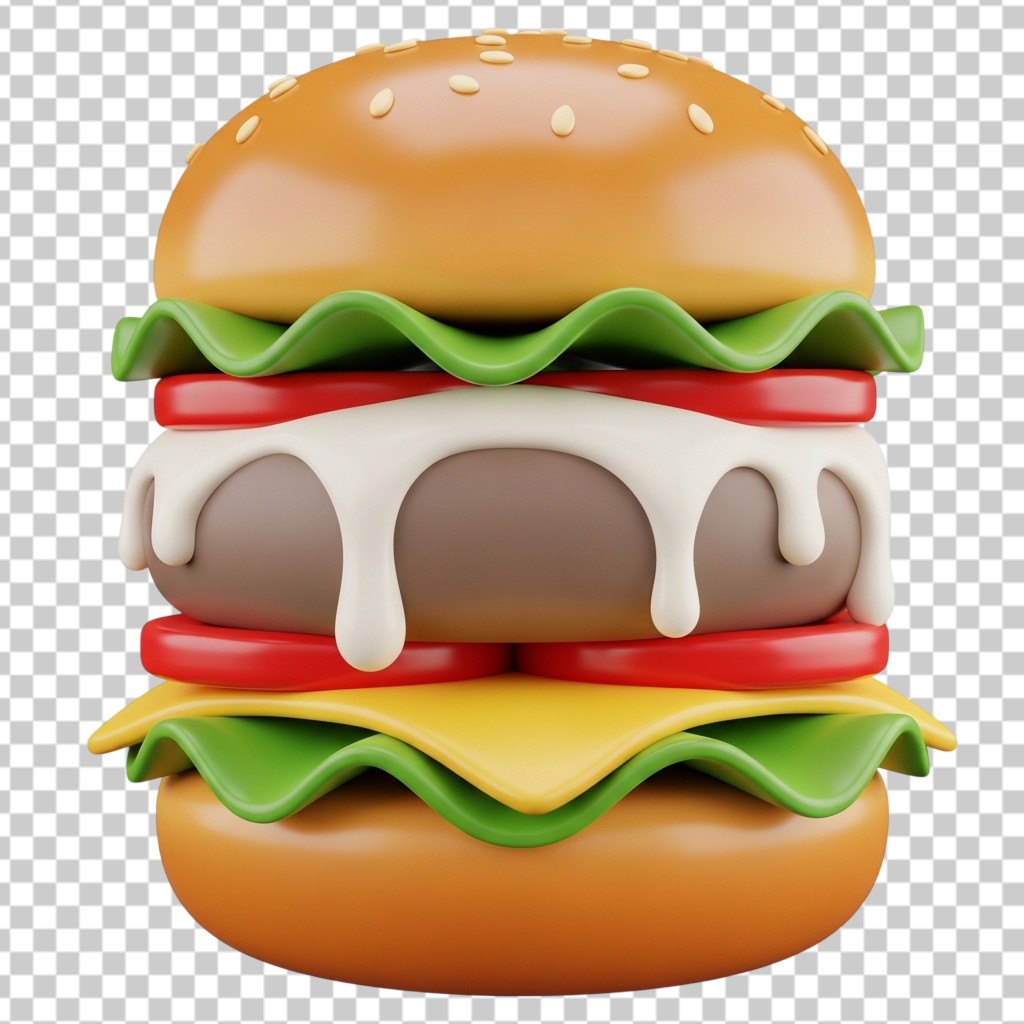 Delicious 3D Double Layer Hamburger PNG Transparent Background