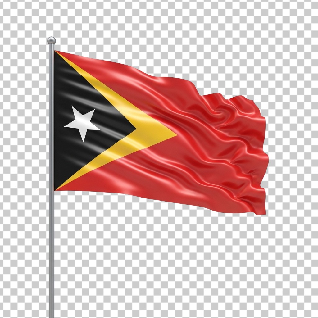 Waving National Flag of Timor-Leste on Pole PNG Transparent Background