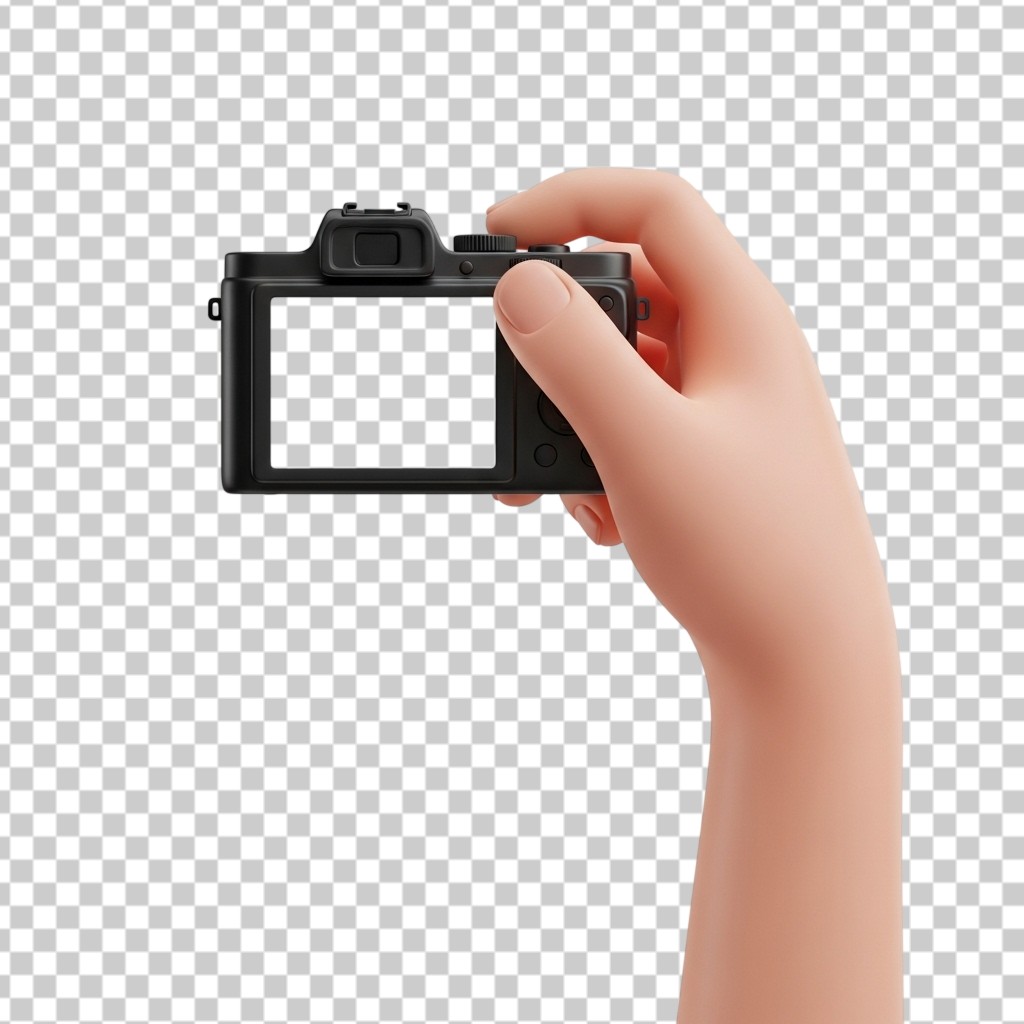 3D Human Hand Holding a Professional Digital Camera PNG Transparent Background