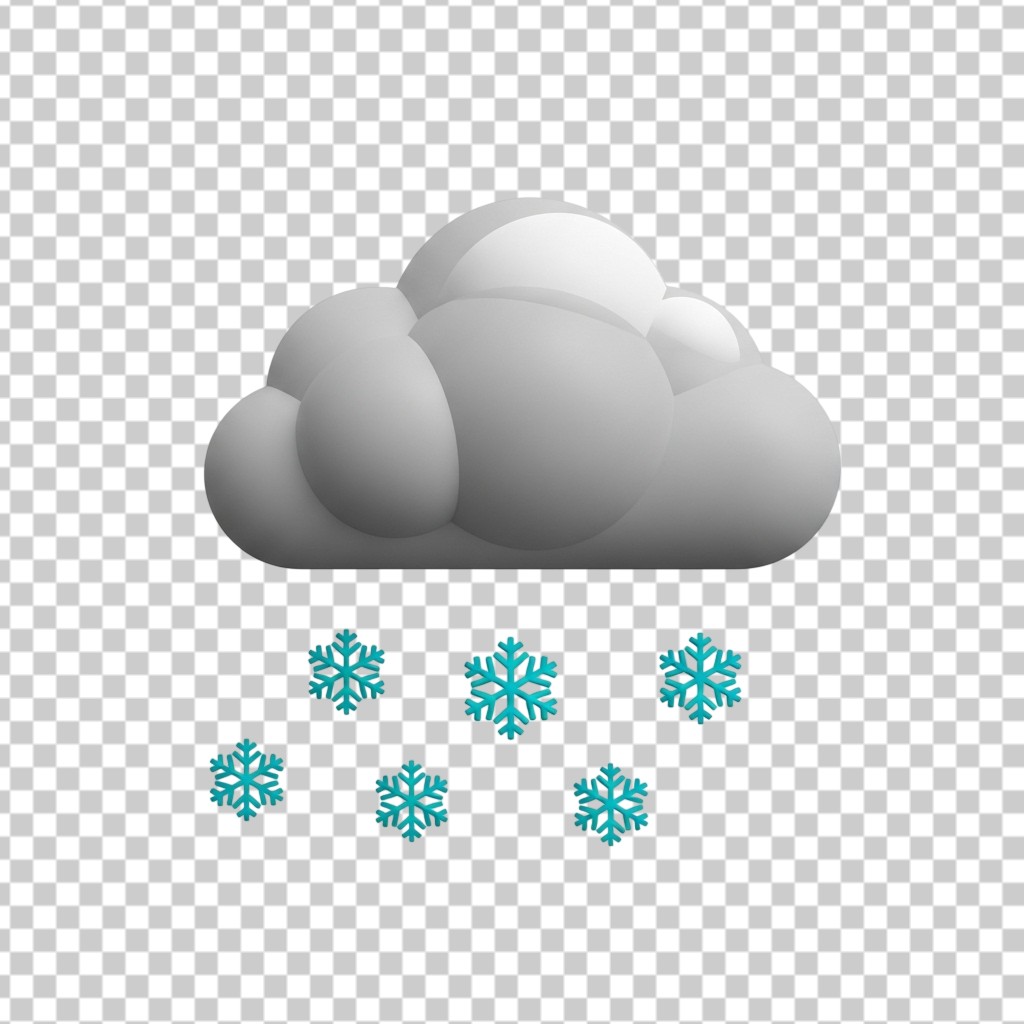 3D Realistic Weather Cloud with Falling Snowflakes for Winter Forecast PNG Transparent Background