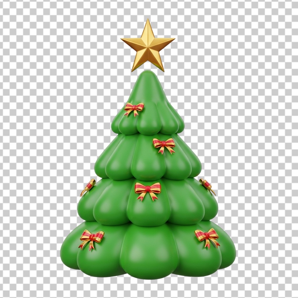 3D Decorated Christmas Tree with Star Topper and Ribbons PNG Transparent Background