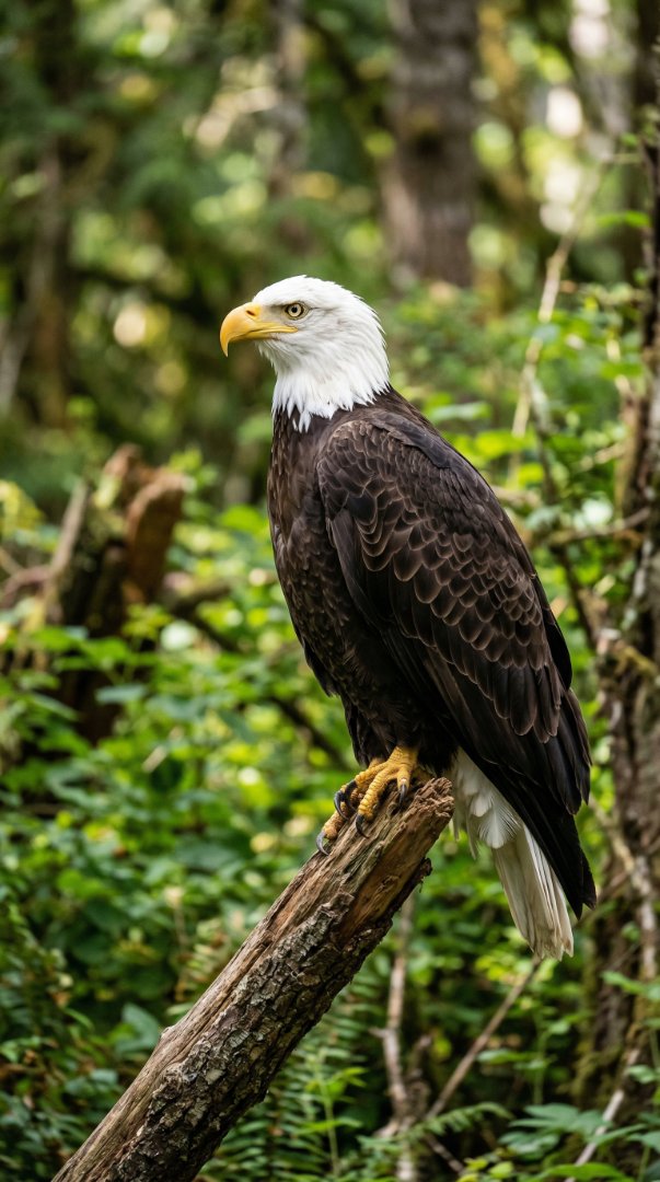 A magnificent portrait of a wild bird of prey with its iconic white head standing tall in nature.