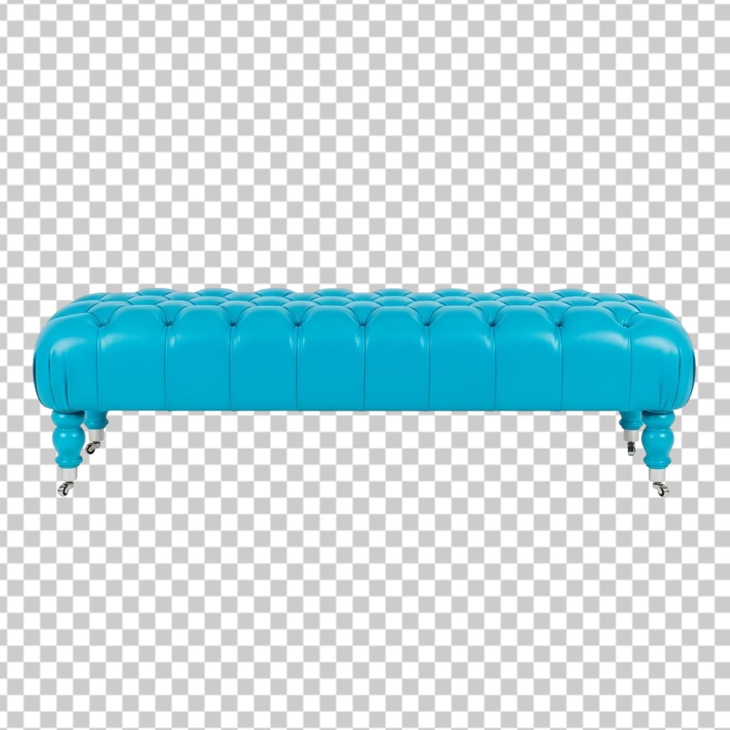 Modern Blue Padded Ottoman Bench Furniture Piece Design PNG Transparent Background