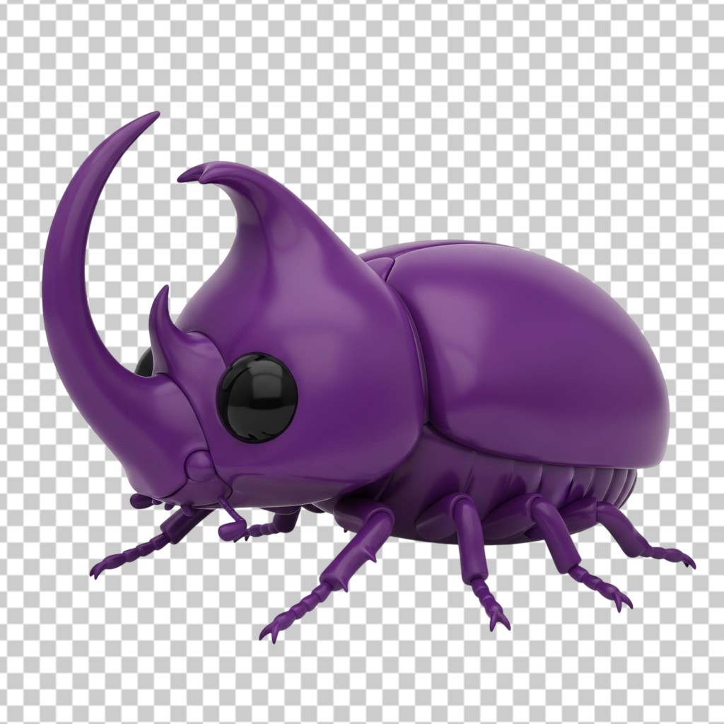 3D Purple Rhinoceros Beetle Insect Character PNG Transparent Background