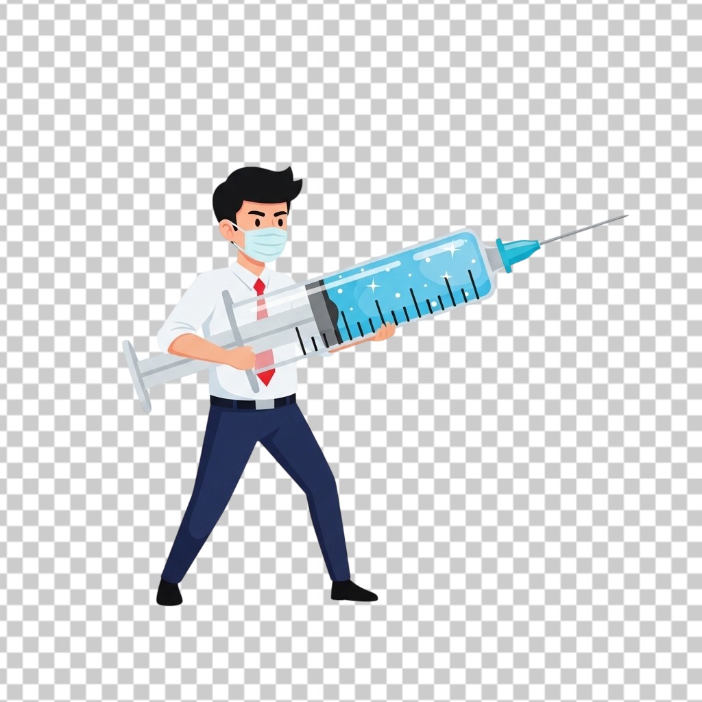 3D Cartoon Character Professional Holding Medical Vaccine Syringe PNG Transparent Background