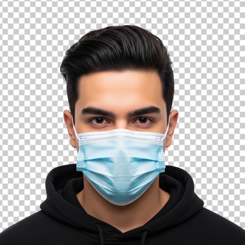 Portrait of Man Wearing Blue Medical Face Mask PNG Transparent Background