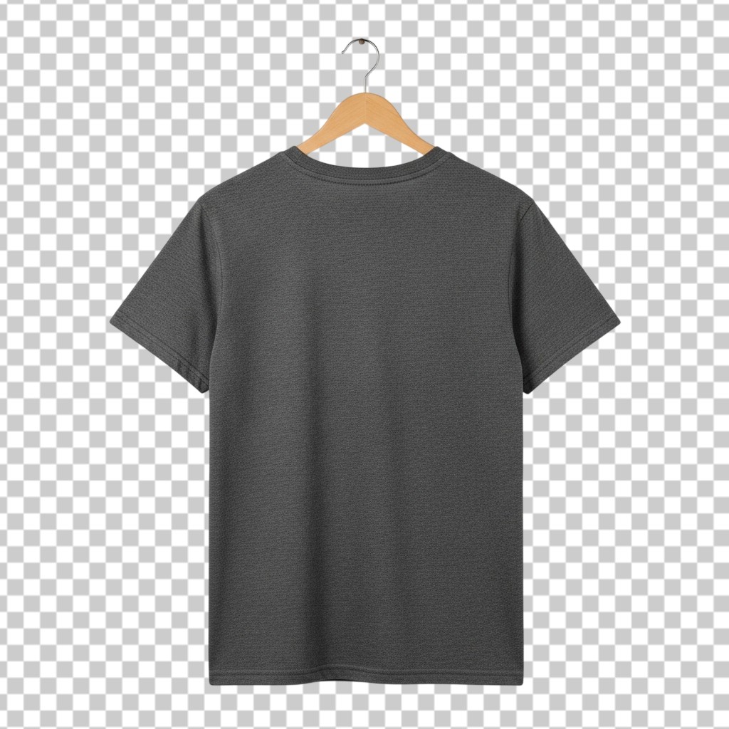 Minimalist Black Cotton T-Shirt Mockup on Wooden Hanger for Apparel Fashion Branding PNG Transparent Background