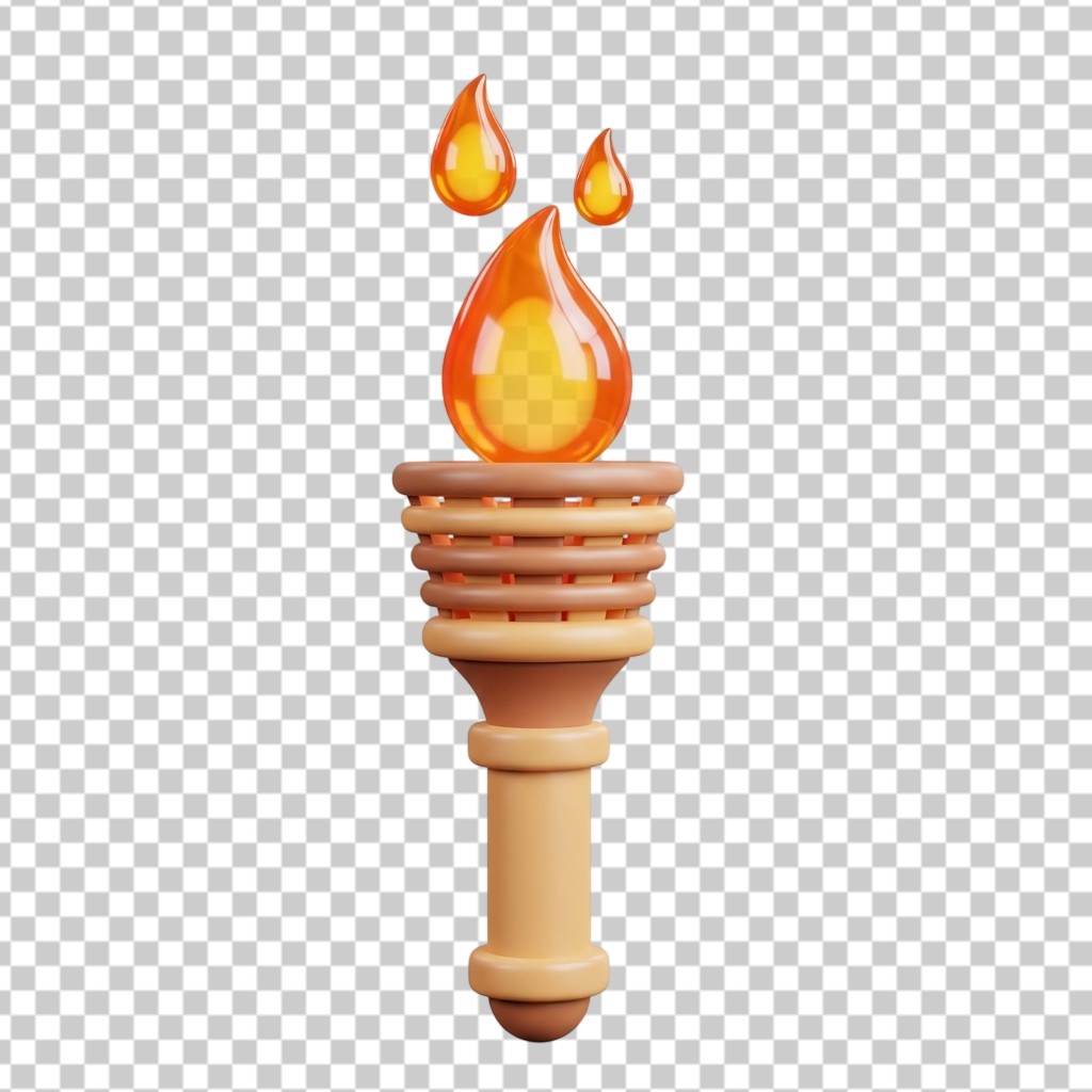 3D Olympic Gold Torch with Burning Flame PNG Transparent Background