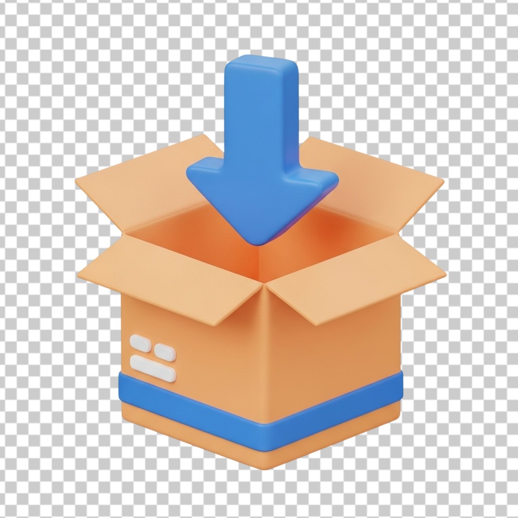 3D Open Delivery Box with Blue Arrow Illustration PNG Transparent Background