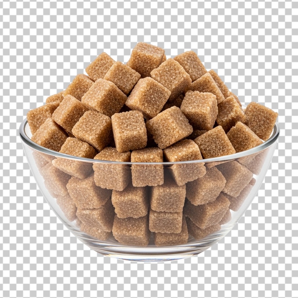 Glass Bowl filled with Golden Brown Sugar Cubes PNG Transparent Background