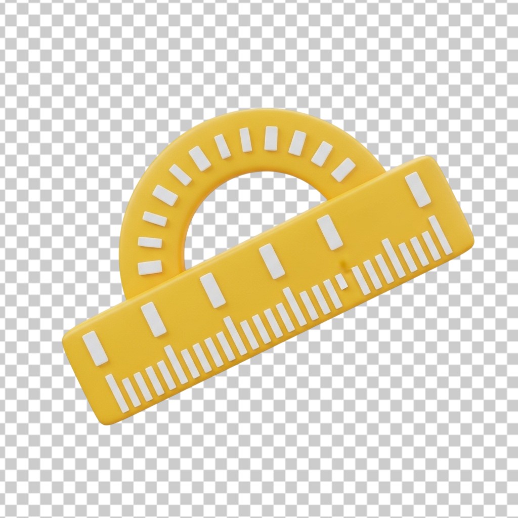3D Yellow Protractor and Ruler Geometry Tools PNG Transparent Background