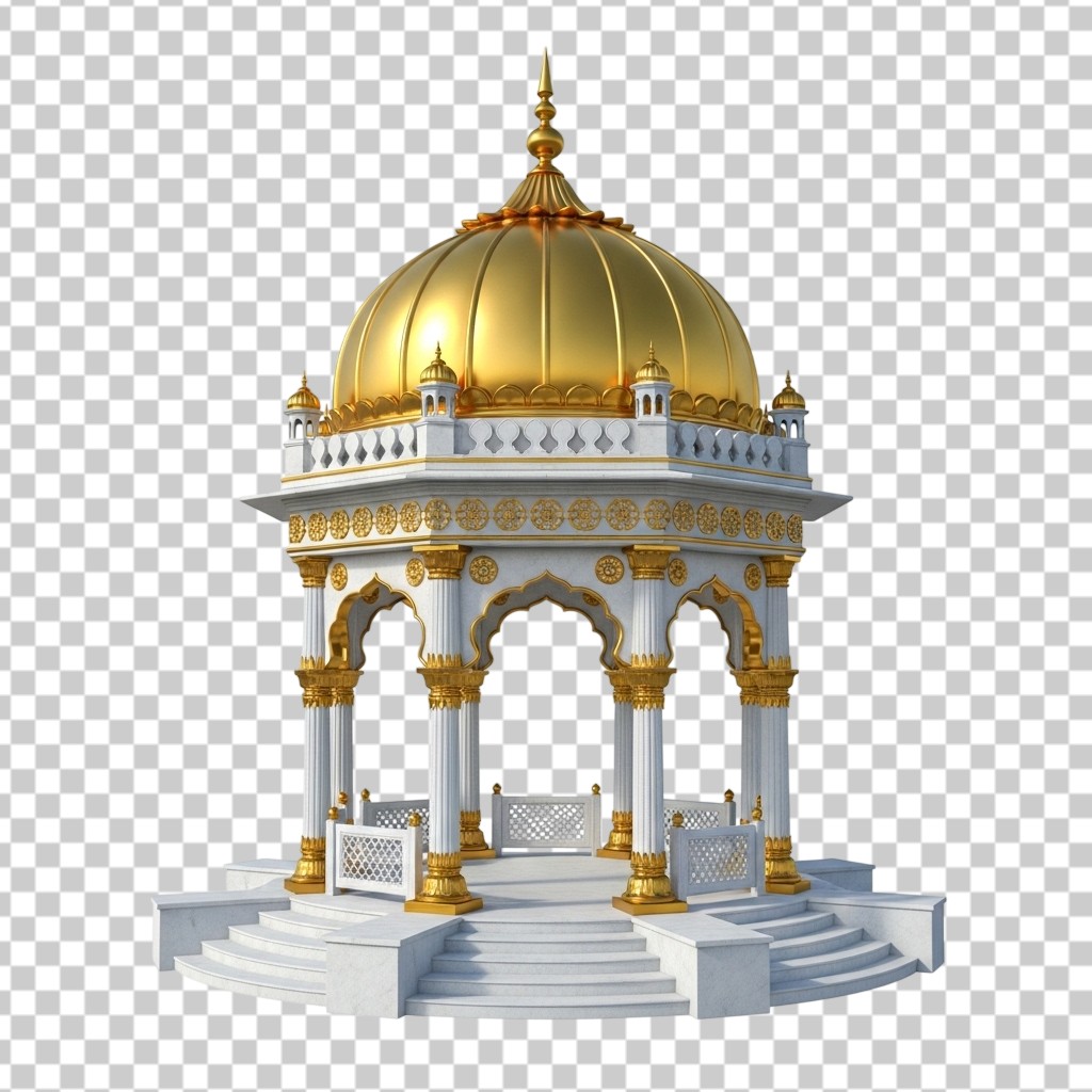 Luxury White Marble and Gold Domed Pavilion Structure PNG Transparent Background