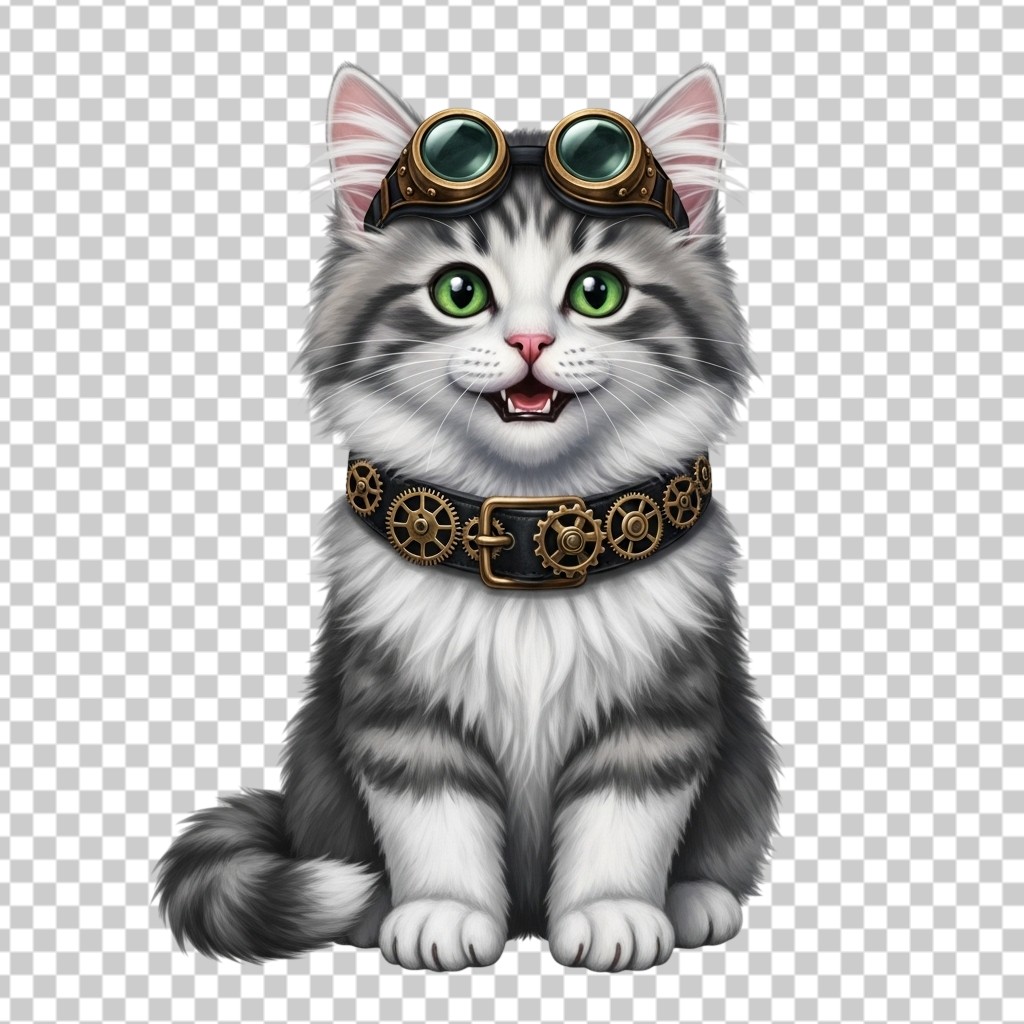 Cute Steampunk Cat Character with Goggles PNG Transparent Background