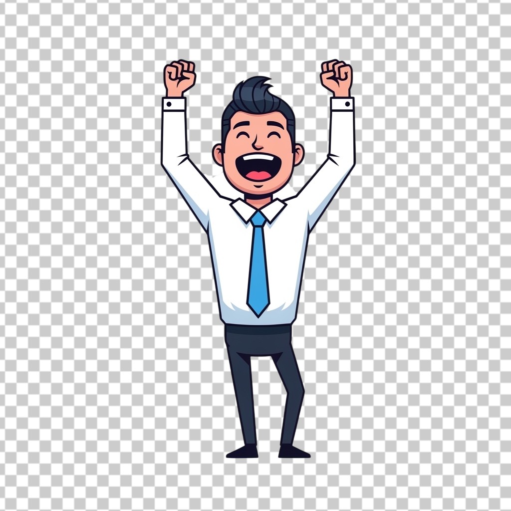 Happy Cheering Businessman Cartoon Character Celebrating Success PNG Transparent Background