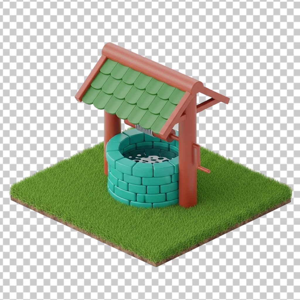 3D Isometric View of a Traditional Stone Water Well PNG Transparent Background