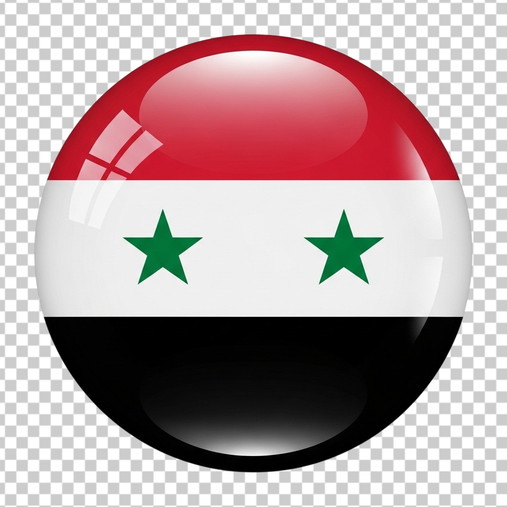 Flag of Syria Glossy Badge Icon 3D Illustration PNG Transparent Background