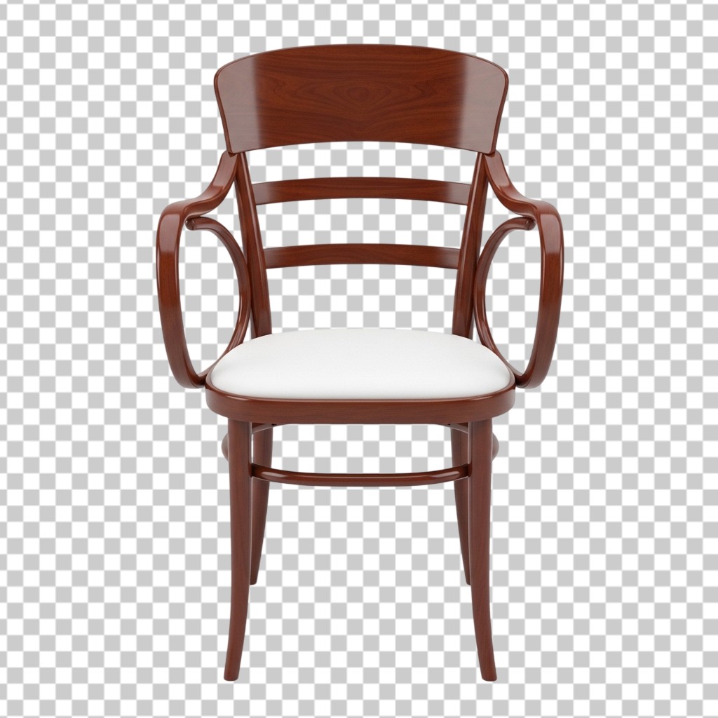 Classic Dark Wood Dining Chair with White Seat PNG Transparent Background