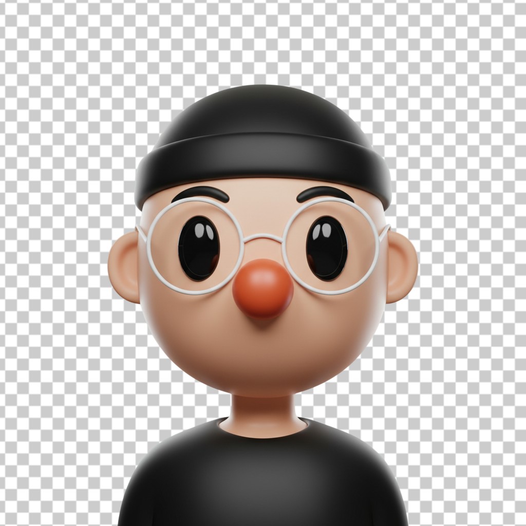 3D Male Character Avatar with Glasses and Black Beanie PNG Transparent Background