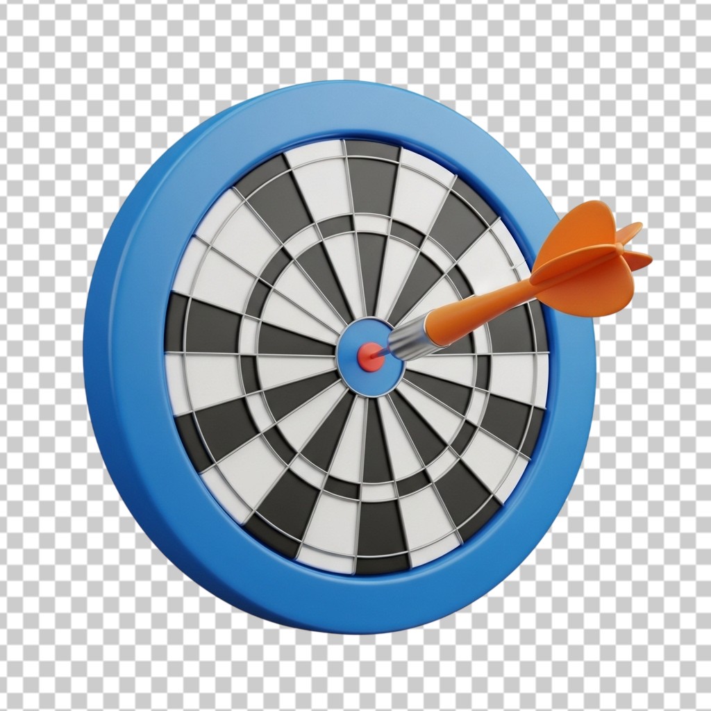 3D Dartboard Target with Orange Dart Hitting Bullseye PNG Transparent Background