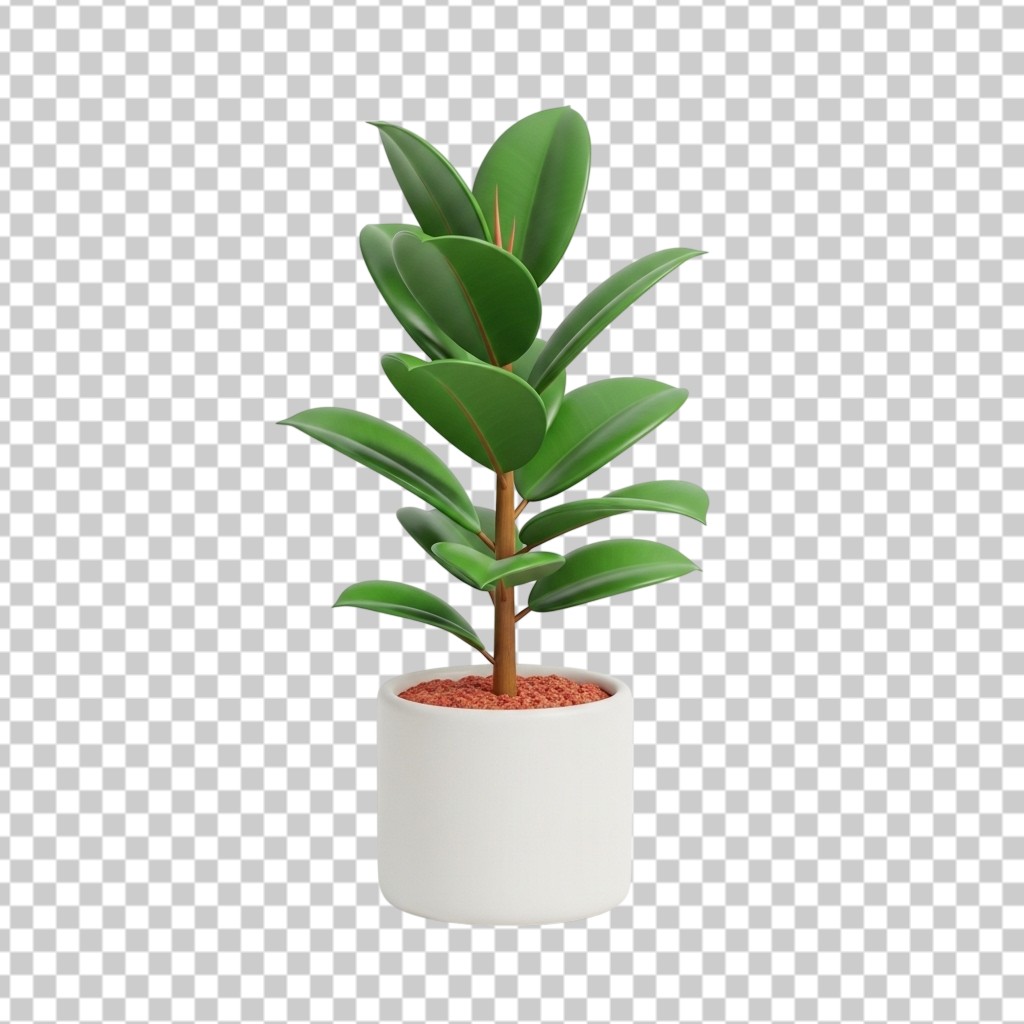 Green Leafy Indoor House Plant in White Pot 3D Rendering PNG Transparent Background