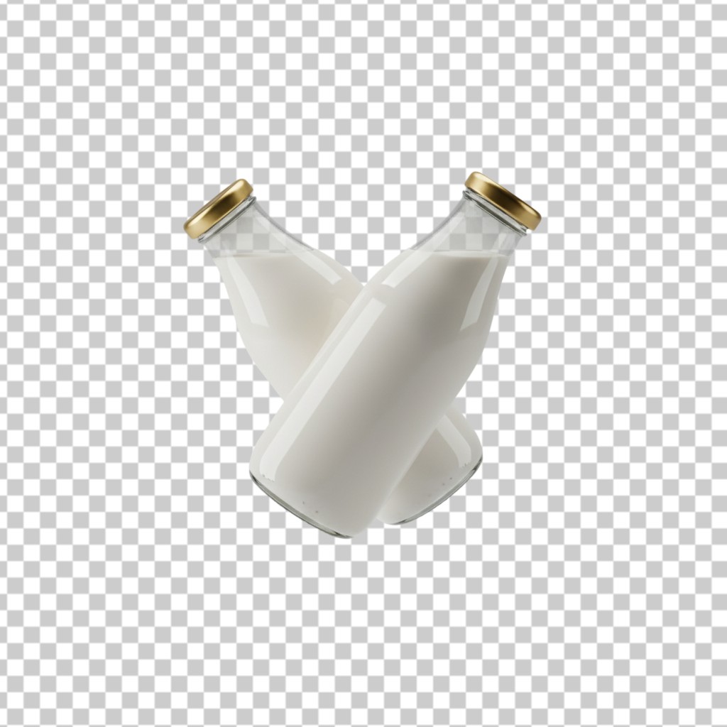 Two Glass Milk Bottles Leaning Against Each Other PNG Transparent Background