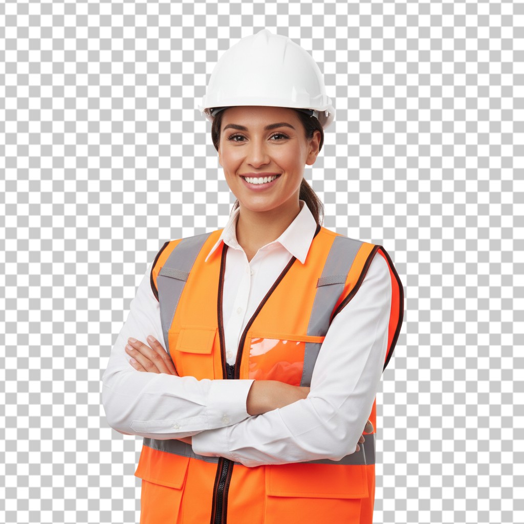 Smiling female worker in orange safety vest PNG Transparent Background,Professionals,People