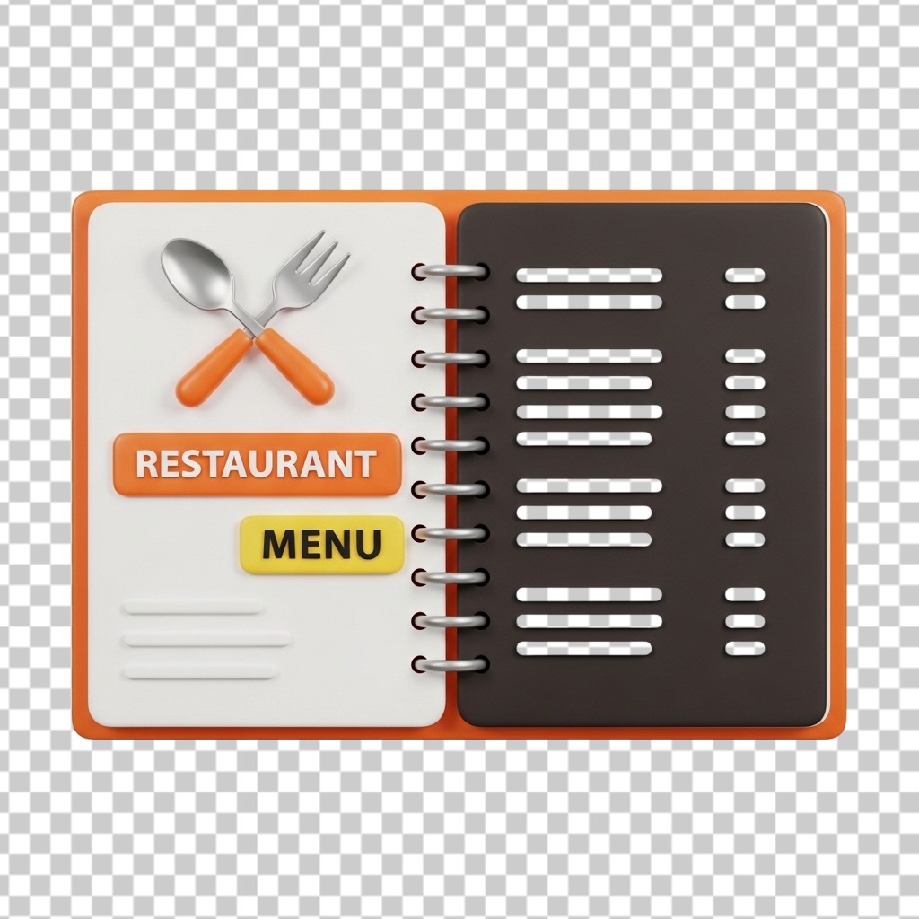 Open Restaurant Menu Book with Cutlery Icon 3D Business PNG Transparent Background
