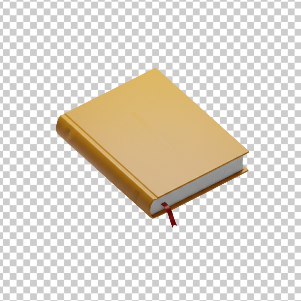 3D Single Gold Book with Red Bookmark PNG Transparent Background