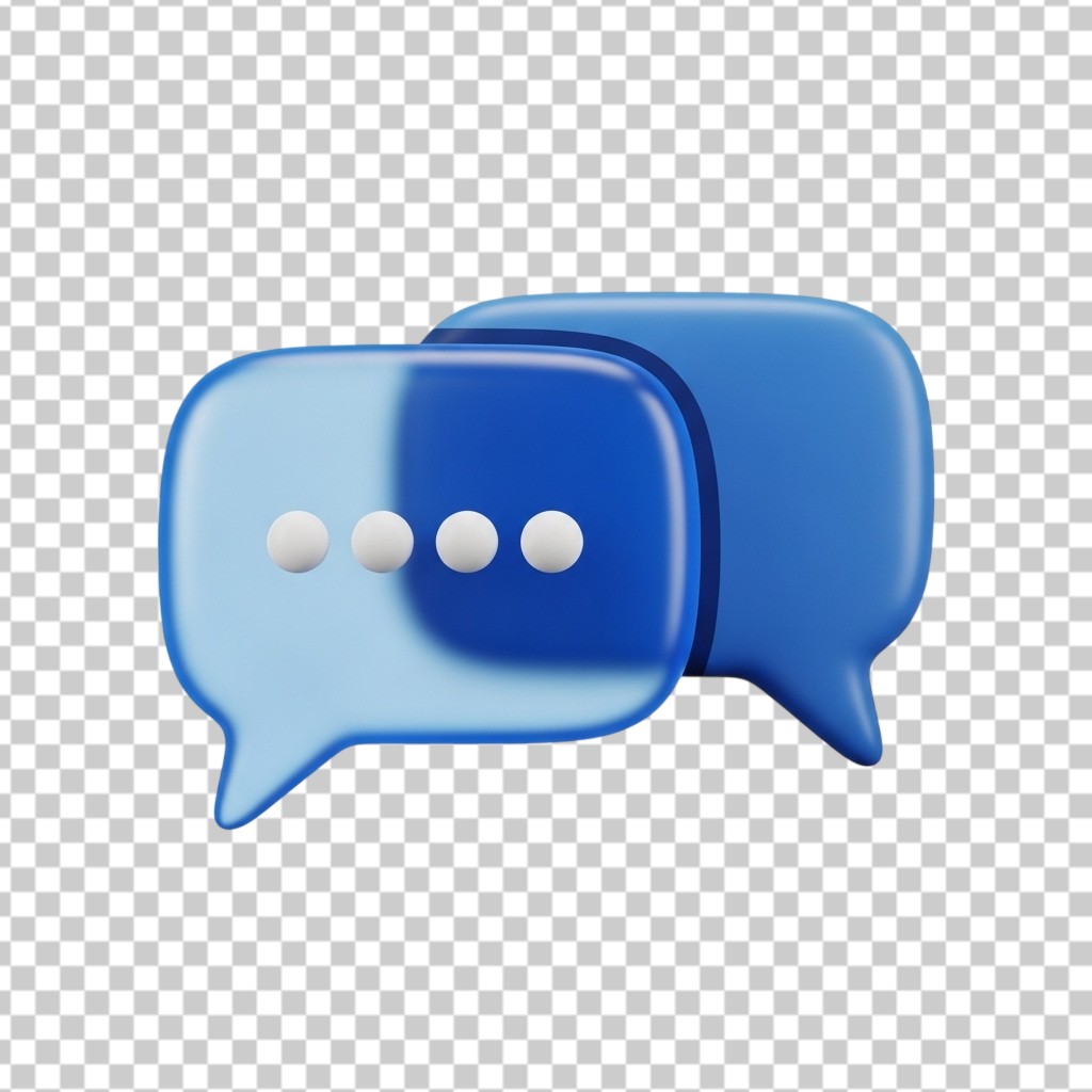 3D Blue Glossy Speech Chat Bubble Notification Icons PNG Transparent Background