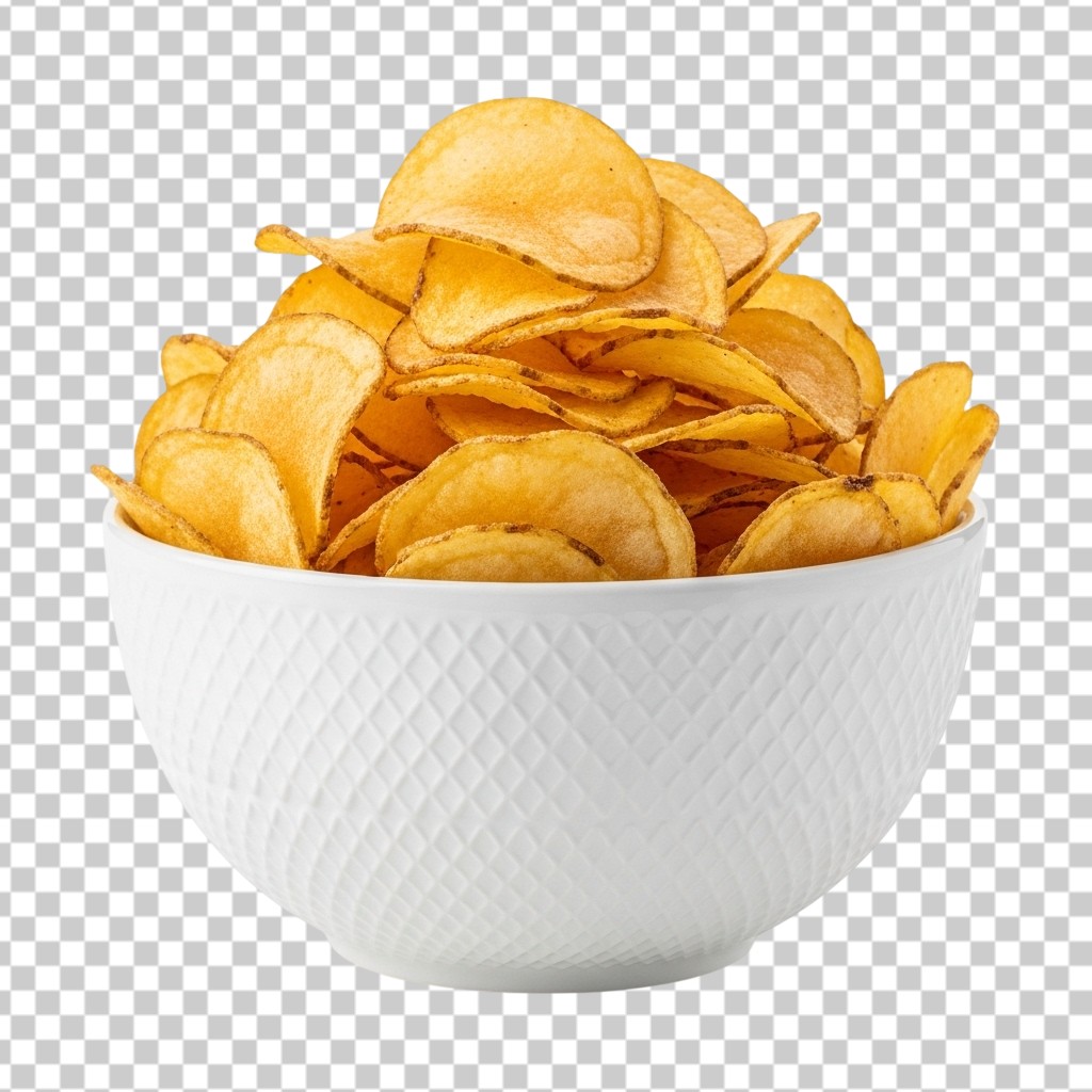 White Bowl Filled with Golden Potato Chips PNG Transparent Background