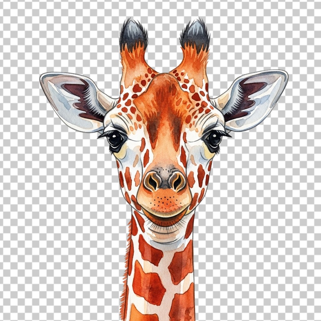 Detailed Portrait of a Giraffe with Vibrant Patterns PNG Transparent Background