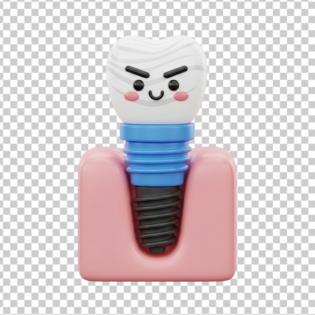 3D Tooth Dental Implant in Gum Illustration for Healthcare PNG Transparent Background