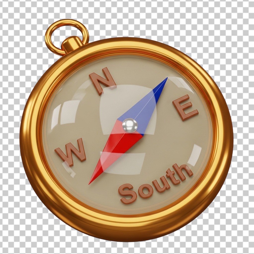 3D Golden Compass Navigation Tool Illustration PNG Transparent Background