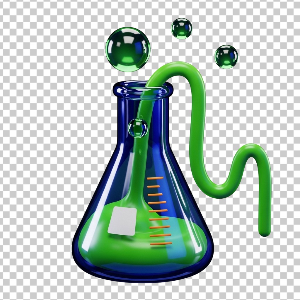 Scientific Beaker with Green Bubbling Liquid for Education PNG Transparent Background