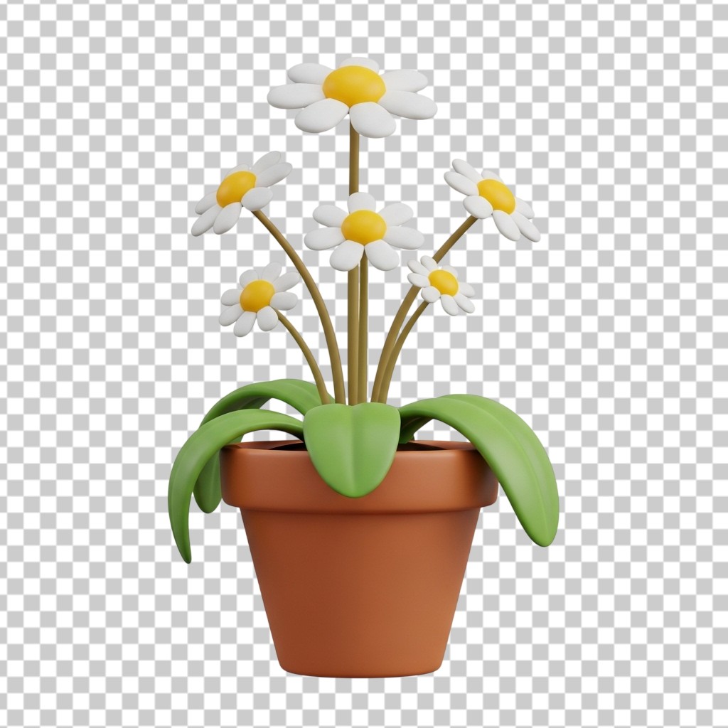 Potted 3D White Daisy Flowers Illustration PNG Transparent Background