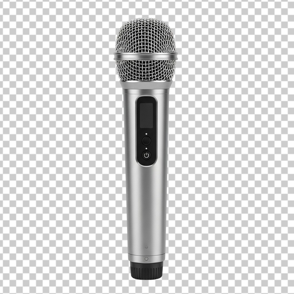 Professional Silver Handheld Wireless Microphone PNG Transparent Background