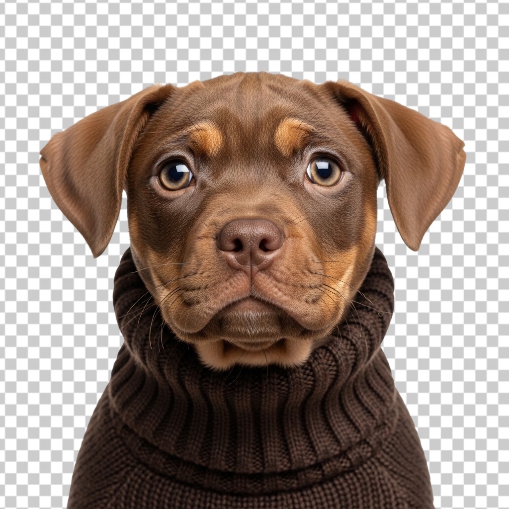Cute Puppy Dog Wearing Brown Knitted Sweater PNG Transparent Background