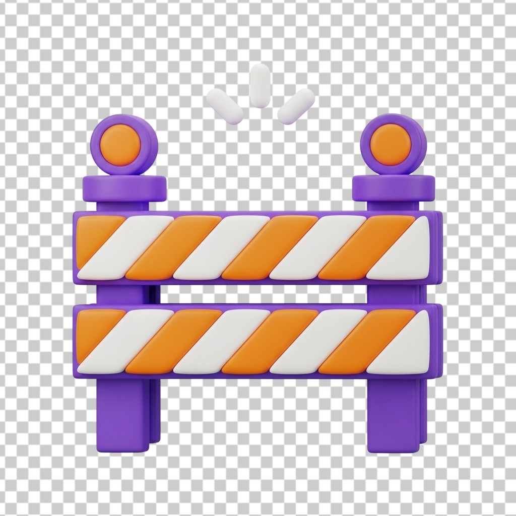 3D Purple and Orange Striped Road Traffic Barrier PNG Transparent Background
