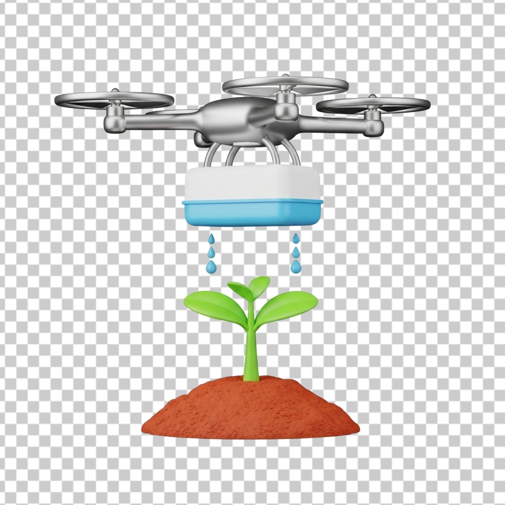 3D Modern Drone Watering a Sprouting Plant for Tech PNG Transparent Background