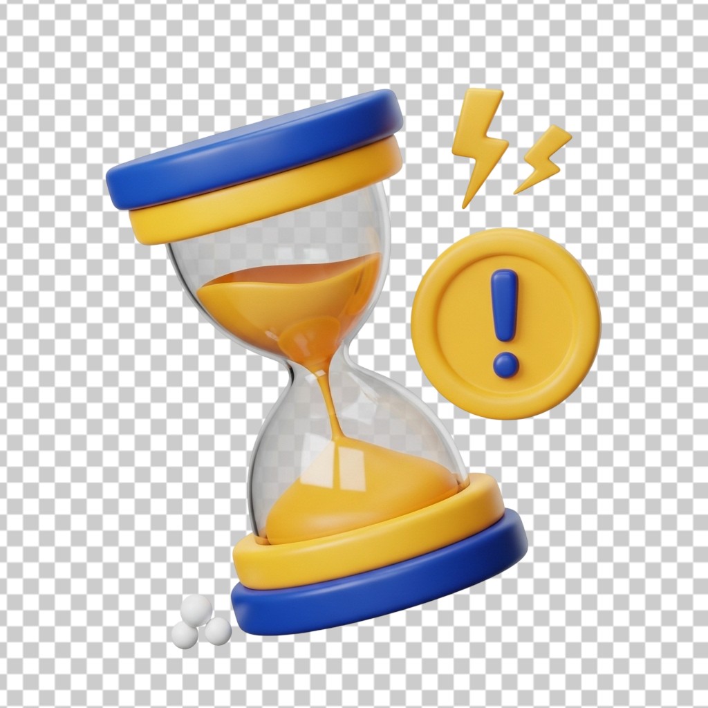 3D Hourglass Timer with Lightning and Alert Icon PNG Transparent Background