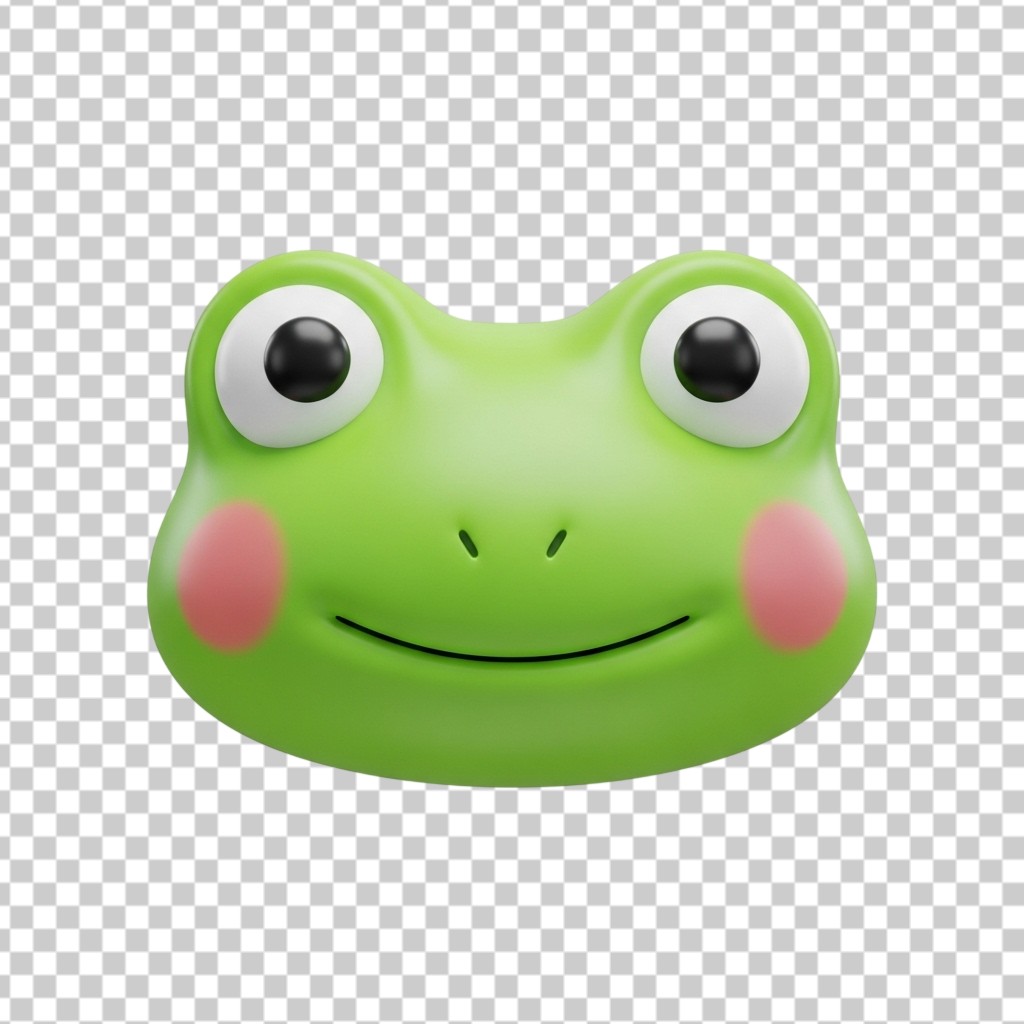3D Cute Smiling Green Frog Face Emoji PNG Transparent Background
