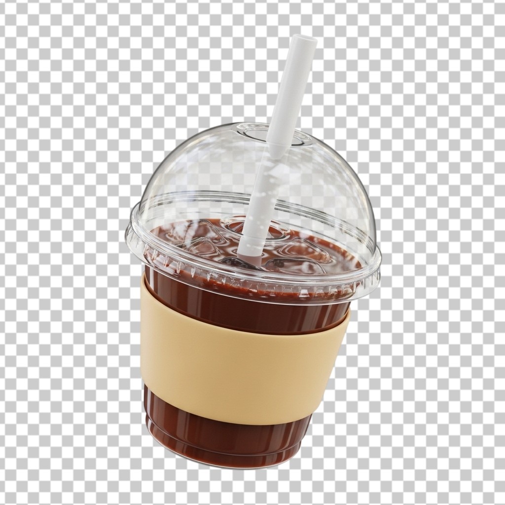 Iced Coffee in Plastic Cup with Straw 3D Food PNG Transparent Background