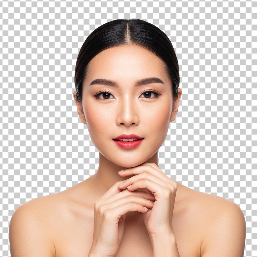 Portrait of Beautiful Young Asian Woman with Clear Skin PNG Transparent Background