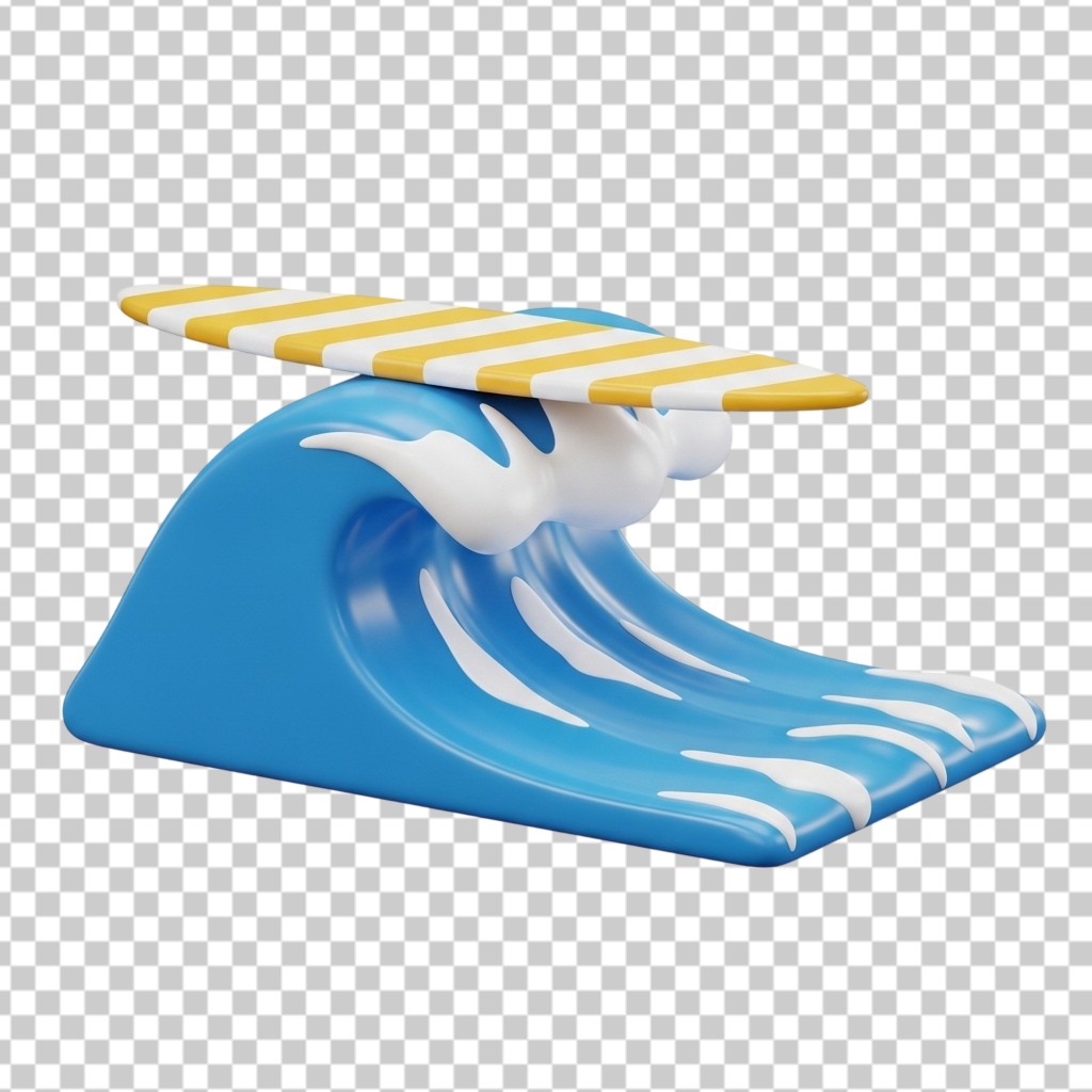Blue Ocean Wave with Surfboard Illustration PNG Transparent Background