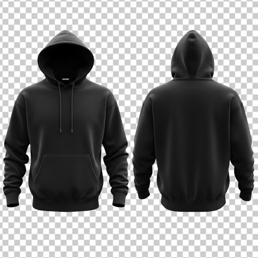 Plain Black Pullover Hoodie Apparel Mockup Front and Back View PNG Transparent Background