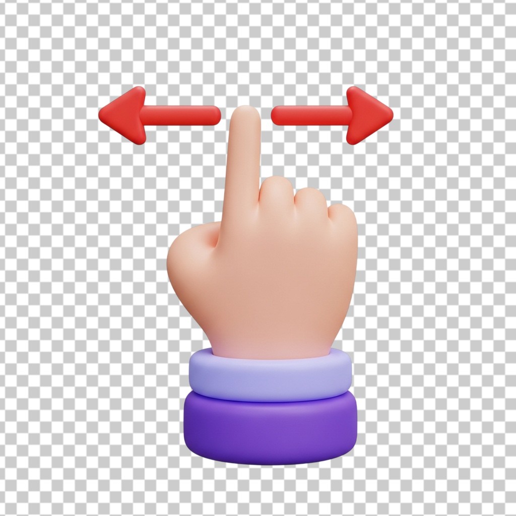 Hand Swipe Gesture with Arrows for Interactive User Interface Design PNG Transparent Background