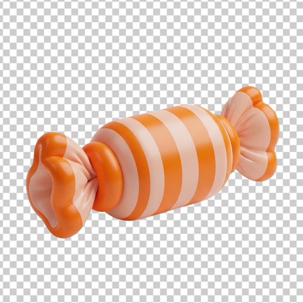 3D Orange and White Striped Wrapped Sweet Candy PNG Transparent Background