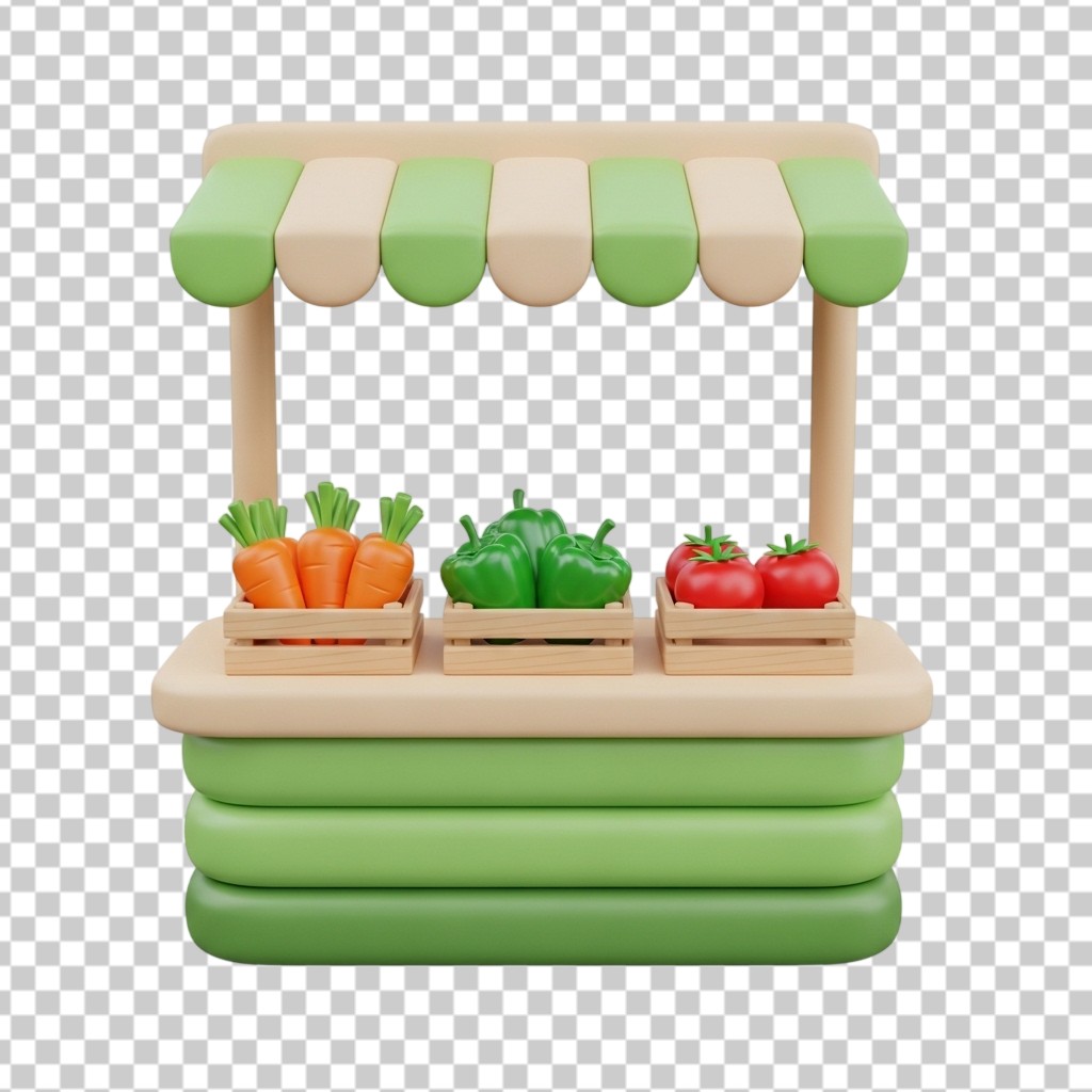 3D Market Stall filled with Fresh Carrots and Greens PNG Transparent Background