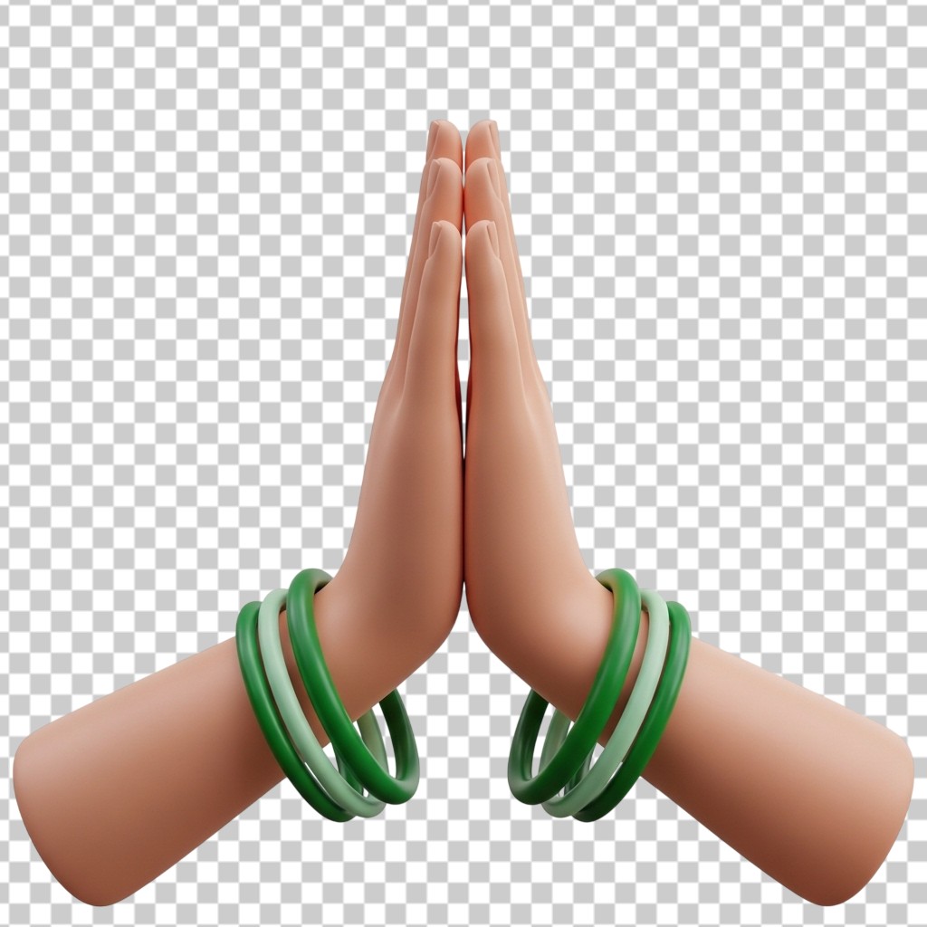 3D Human Hands in Namaste or Prayer Position with Bangles PNG Transparent Background